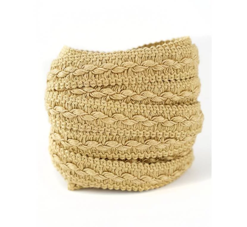 Текстильное изделие для декора изготовлено на основе 70% смешанных и 30% ацетатных волокон. Благодаря совершенному виду и структуре узора, элемент лучше всего подходит для обработки краев скатертей, штор, портьер, занавесок, подушек и других бытовых предметов, которые создают уют и комфорт в доме и тематических заведениях различного профиля.